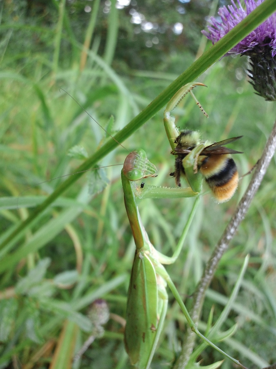 カマキリが「蜂」を食べる様子です。