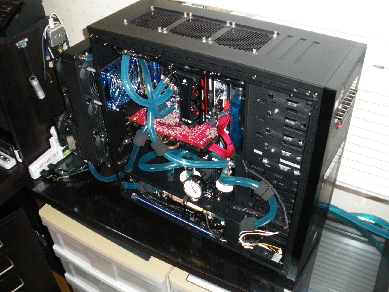 解体し、良くこのケースに水冷構成したものです。